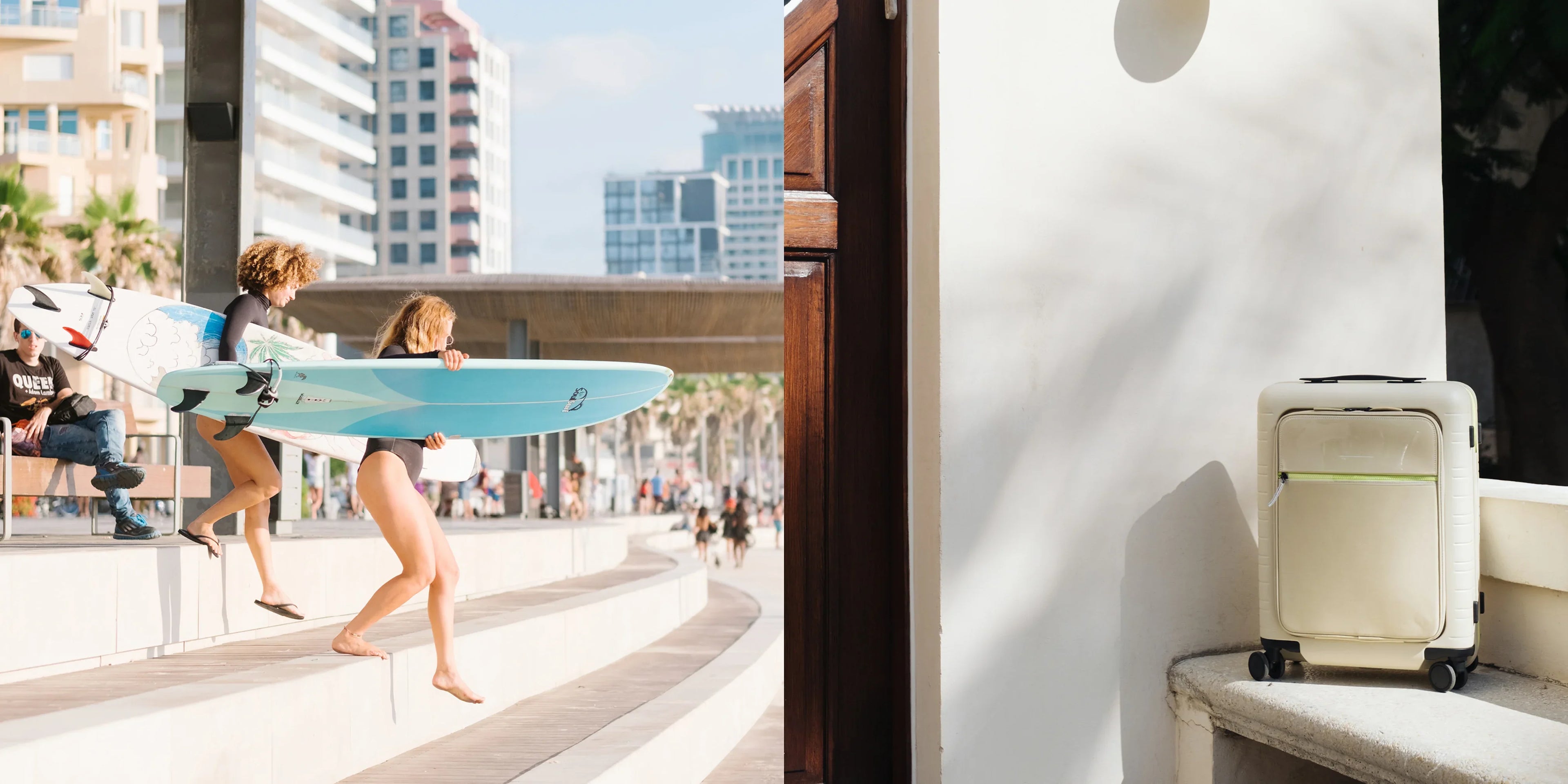 Laut den in Frankreich geborenen Fotografinnen Annael und Lauren Tolila dreht sich in Tel Aviv „alles um Liebe, Leidenschaft, Essen und Party“. Für sie ist Tel Aviv ein Ort, an dem Kulturen und Ideen auf einzigartige Weise aufeinander treffen und damit den unvergleichlichen Charakter der Stadt prägen. Die ursprünglich aus Nizza, Frankreich, stammenden Schwestern sind vor einigen Jahren von einer Mittelmeerküste zur anderen gezogen und teilen ihre Zeit weiterhin auf beide Orte auf. „Als wir nach Tel Aviv zogen, fanden wir eine ähnliche Süße des Lebens wie in Nizza und liebten einfach die multikulturelle Atmosphäre der Stadt“, fügt Lauren hinzu. Mit ihrer Arbeit, die die Produktion von Reise, Mode und Design-Content umfasst, ist ihr Lebensstil an der Küste allgegenwärtig in ihrer Arbeit verankert. „Alles, was solar, farbenfroh und positiv ist, war für uns immer ein Antrieb und eine Inspiration“, sagt Annael und fügt hinzu, dass das Erleben neuer Kulturen ihre Fotografie gleichermaßen beeinflusst. Wenn sie gerade nicht an visuellen Narrativen arbeiten, findet man die beiden Schwestern auf Spaziergängen durch Tel Avivs ruhigere Viertel, auf der Suche nach regionalen Produkten auf Food-Märkten oder beim Schwimmen im Meer.